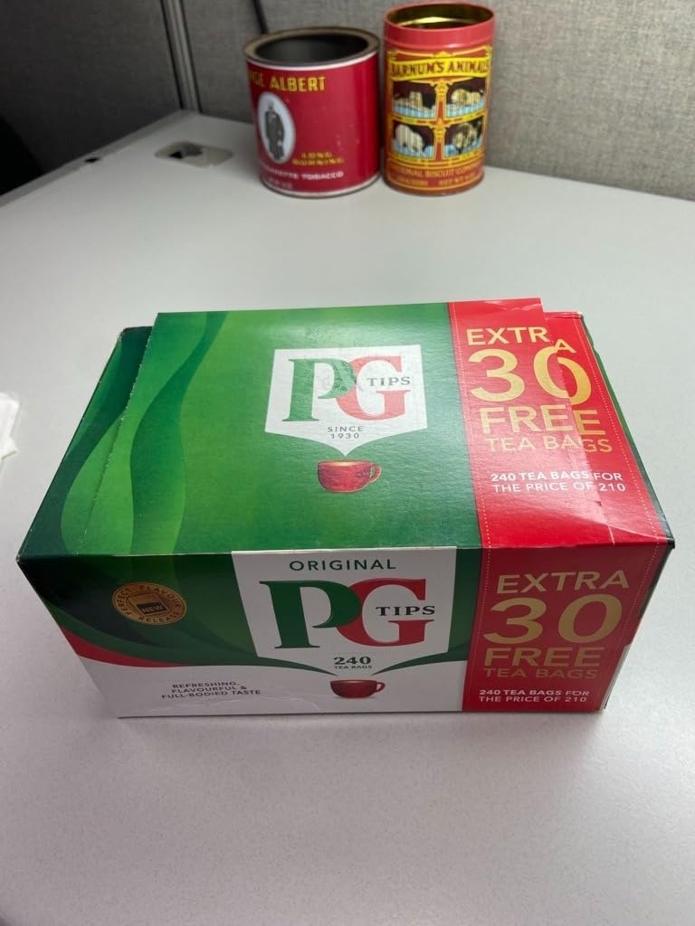 Pack of 2 x 240 count PG Tips tea bags – strong black tea with rich, bold flavor. Non-pyramid design for easy brewing. Ideal for daily use, offices, or families – classic British taste in generous supply.